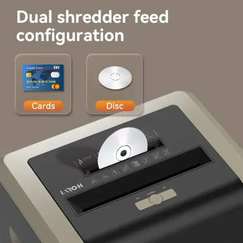 Combined with its generous input capacity, this high shredding speed ensures uninterrupted operation and supports time-sensitive document management needs.