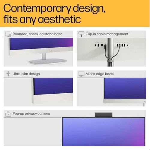 Say goodbye to bulky towers and messy cables. The HP All-in-One 24-cr0086d Core i5 13th Gen Desktop PC integrates all its power and technology into a slim, elegant form factor.